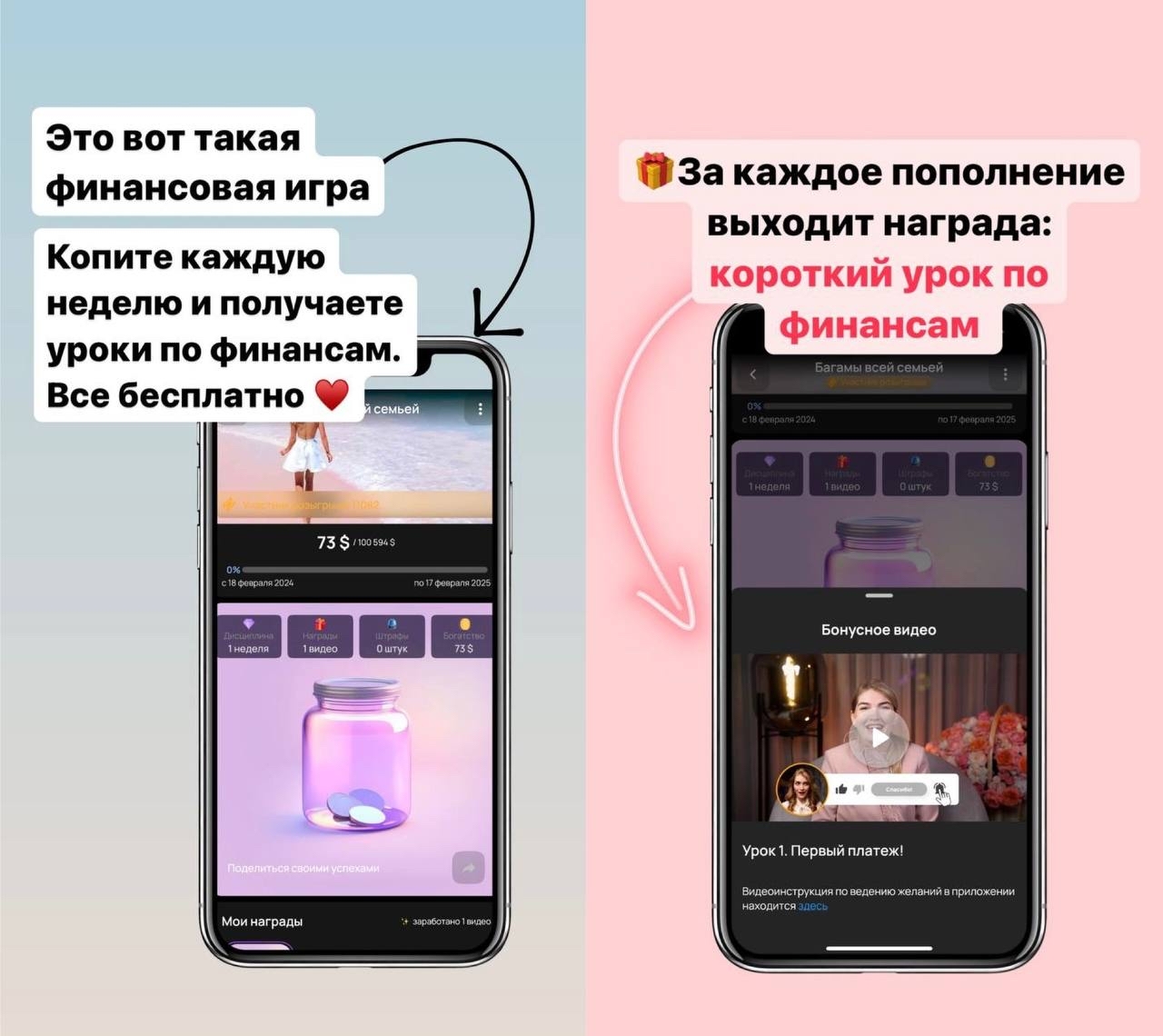 Поставить цель в приложении и начать копить с помощью бесплатной игры очень просто и удобно!